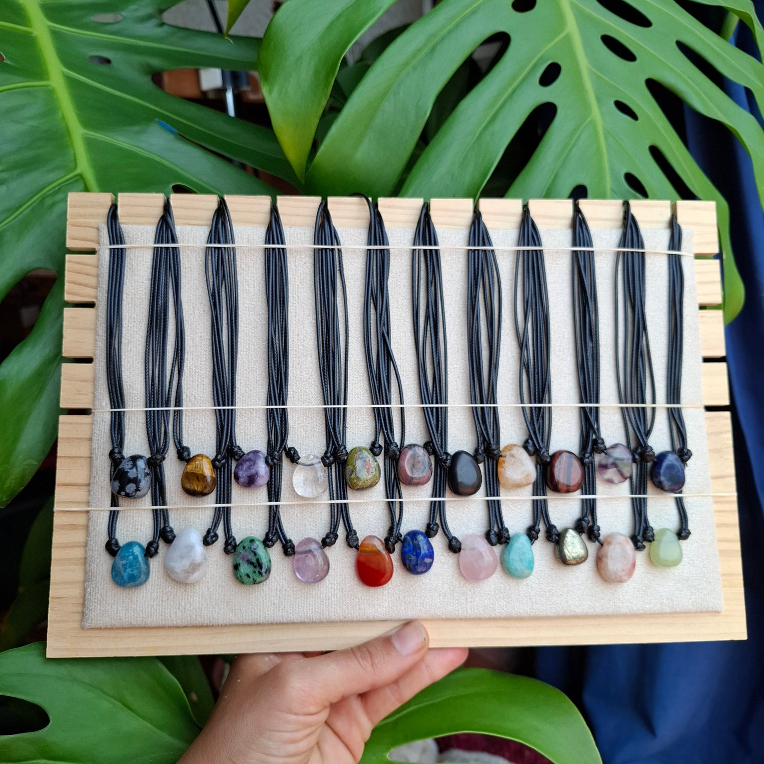 Tanto en la tienda como en el puesto, puedes encontrar todo tipo de pendientes, colgantes, pulseras.... hechos con piedras muy especiales y con mimo y cariño.