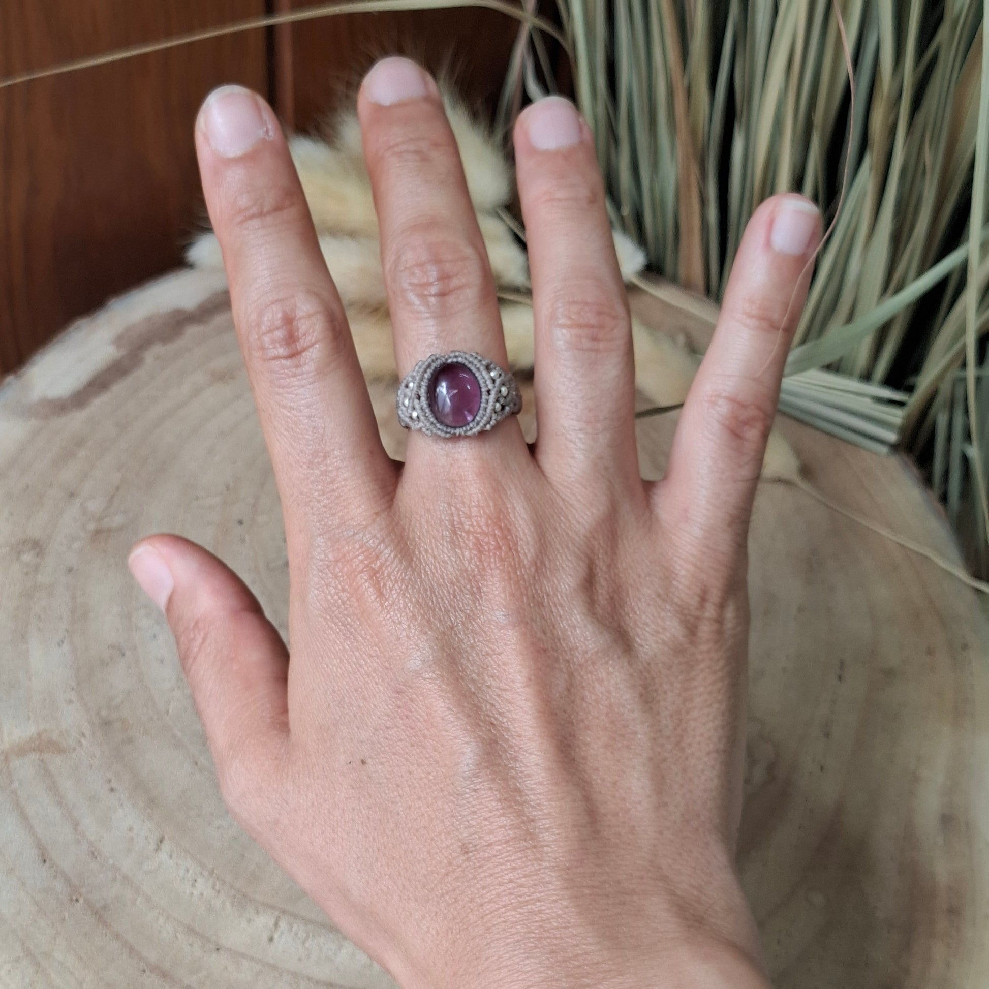 Anillo artesanal con amatista