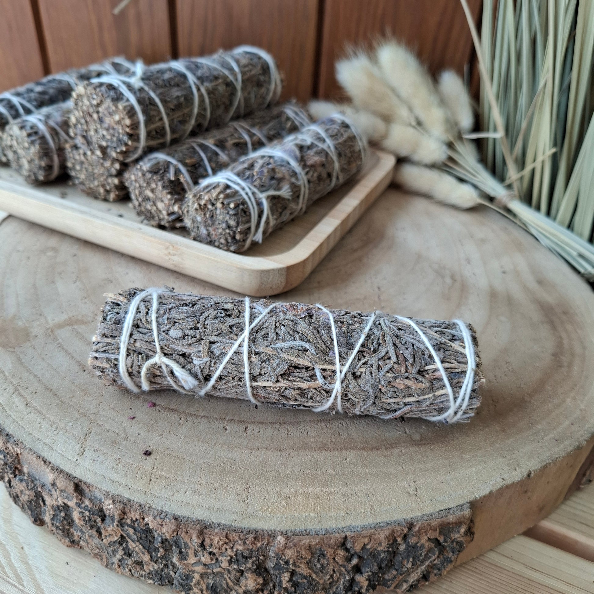 Este es uno de los atadillos de hierbas más utilizados para la relajación debido al relajante efecto de la lavanda y a su buen aroma floral que perfuma la sala con un ambiente totalmente natural.