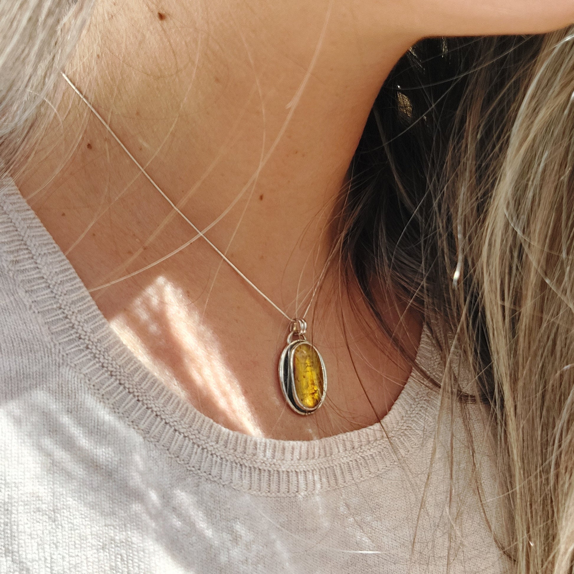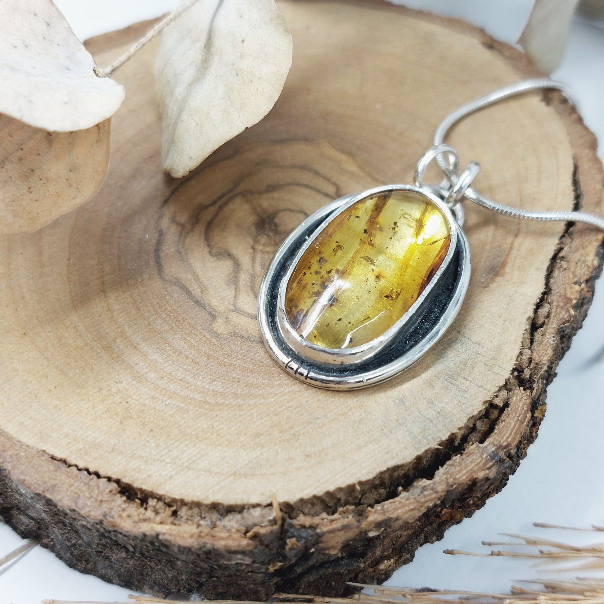 Contiene un precioso ámbar natural elegido por nosotros en México con mucho cariño.
