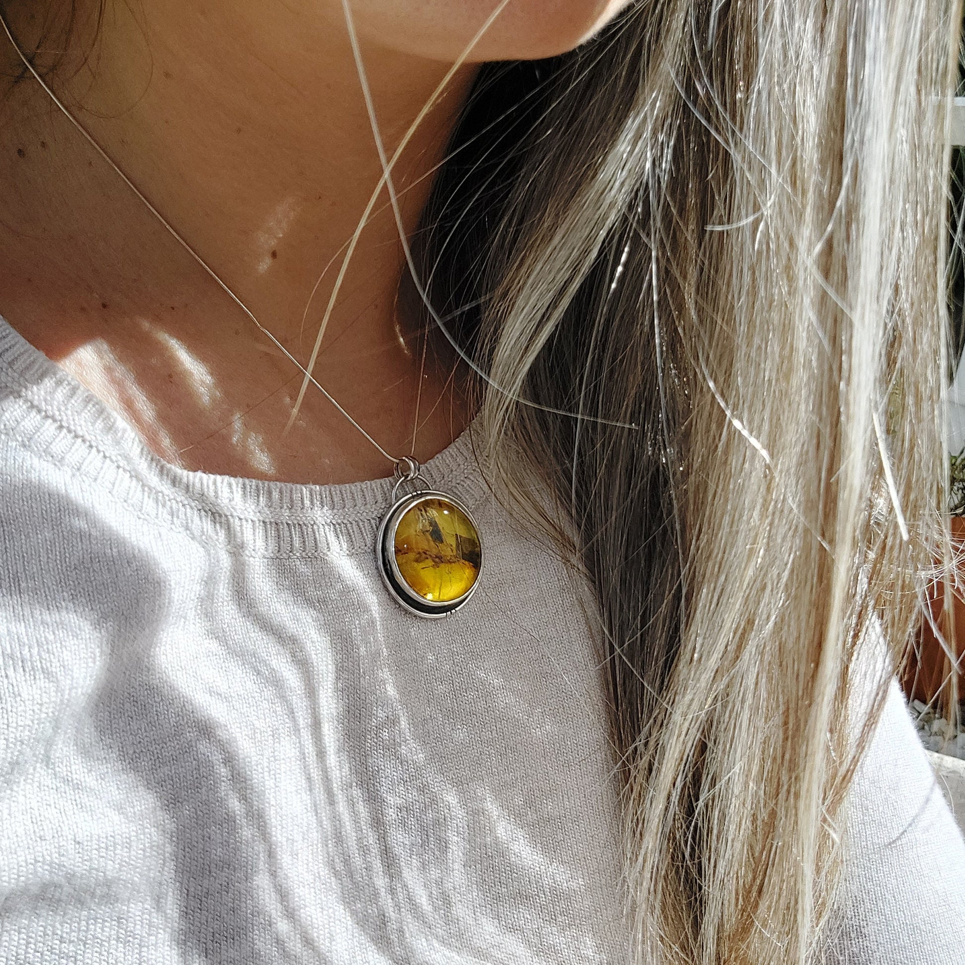 Contiene un precioso ámbar natural elegido en México por nosotros con mucho cariño.