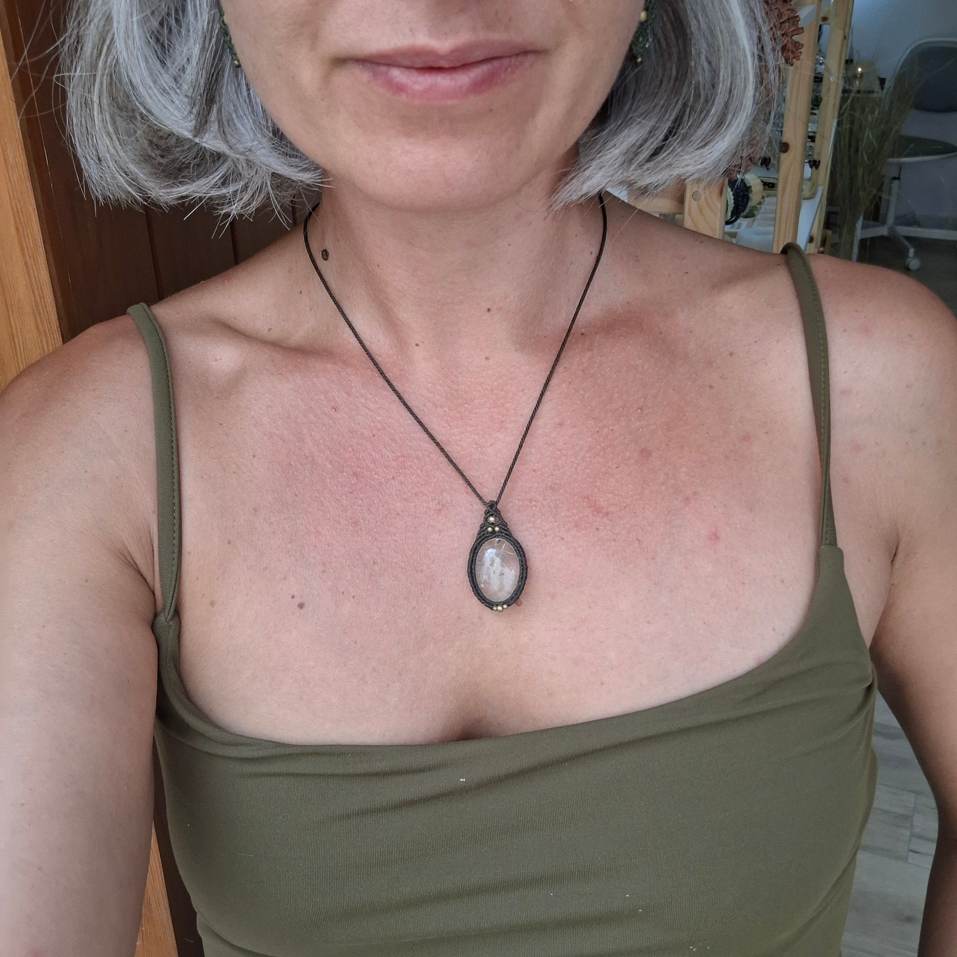 Las joyas hechas en macramé están elaboradas de hilo encerado de poliéster de alta calidad. Aunque el hilo es resistente al agua, recomiendo retirarse la joya para ducharse o para bañarse en la playa o en la piscina. El agua de la piscina contiene cloro y otros elementos químicos que podrían dañar el hilo, los elementos que decoran la pieza y el mineral en sí. Mientras no se use la joya, guarda tu joya en la bolsa de algodón que la contiene y en un lugar donde la temperatura ni la luz directa le pueda afectar de forma continua. Las joyas que pueden tener pequeños elementos decorativos como cuentas de latón y plata, puedes recuperar su brillo fácilmente frotando suavemente con una gamuza limpia metales.