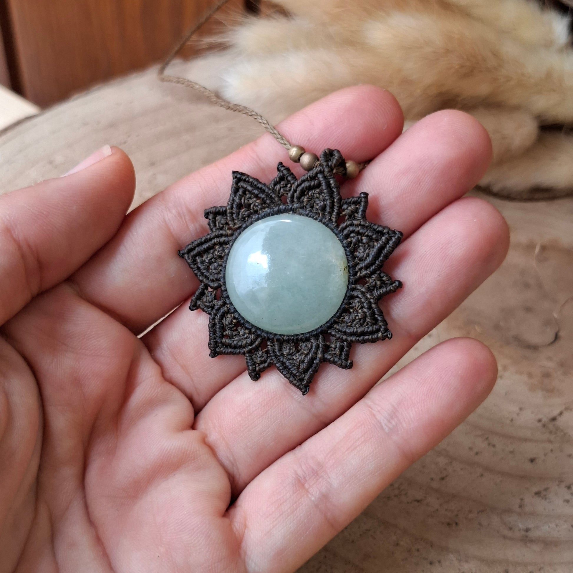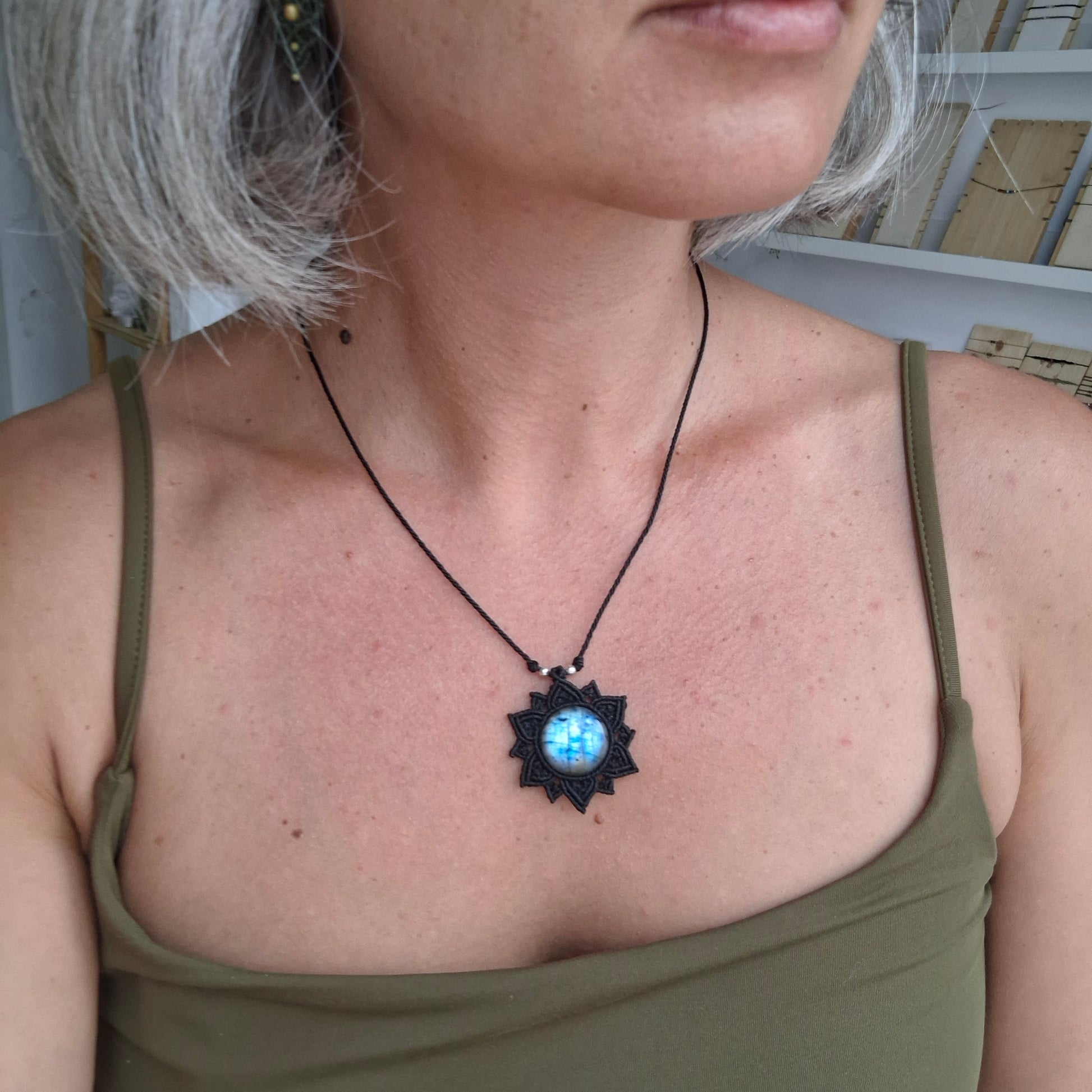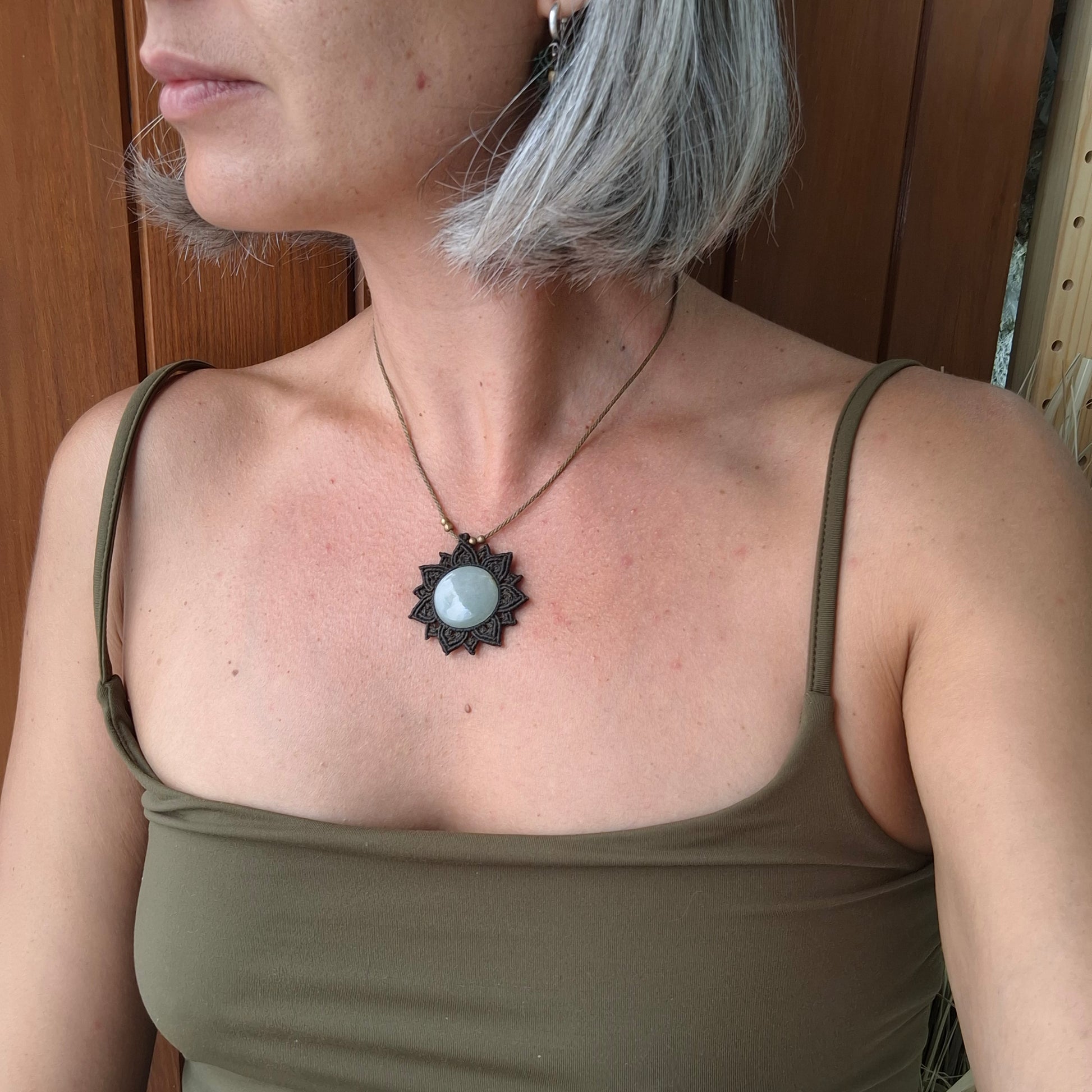 Las joyas hechas en macramé están elaboradas de hilo encerado de poliéster de alta calidad. Aunque el hilo es resistente al agua, recomiendo retirarse la joya para ducharse o para bañarse en la playa o en la piscina. El agua de la piscina contiene cloro y otros elementos químicos que podrían dañar el hilo, los elementos que decoran la pieza y el mineral en sí. Mientras no se use la joya, guarda tu joya en la bolsa de algodón que la contiene y en un lugar donde la temperatura ni la luz directa le pueda afectar de forma continua. Las joyas que pueden tener pequeños elementos decorativos como cuentas de latón y plata, puedes recuperar su brillo fácilmente frotando suavemente con una gamuza limpia metales.
