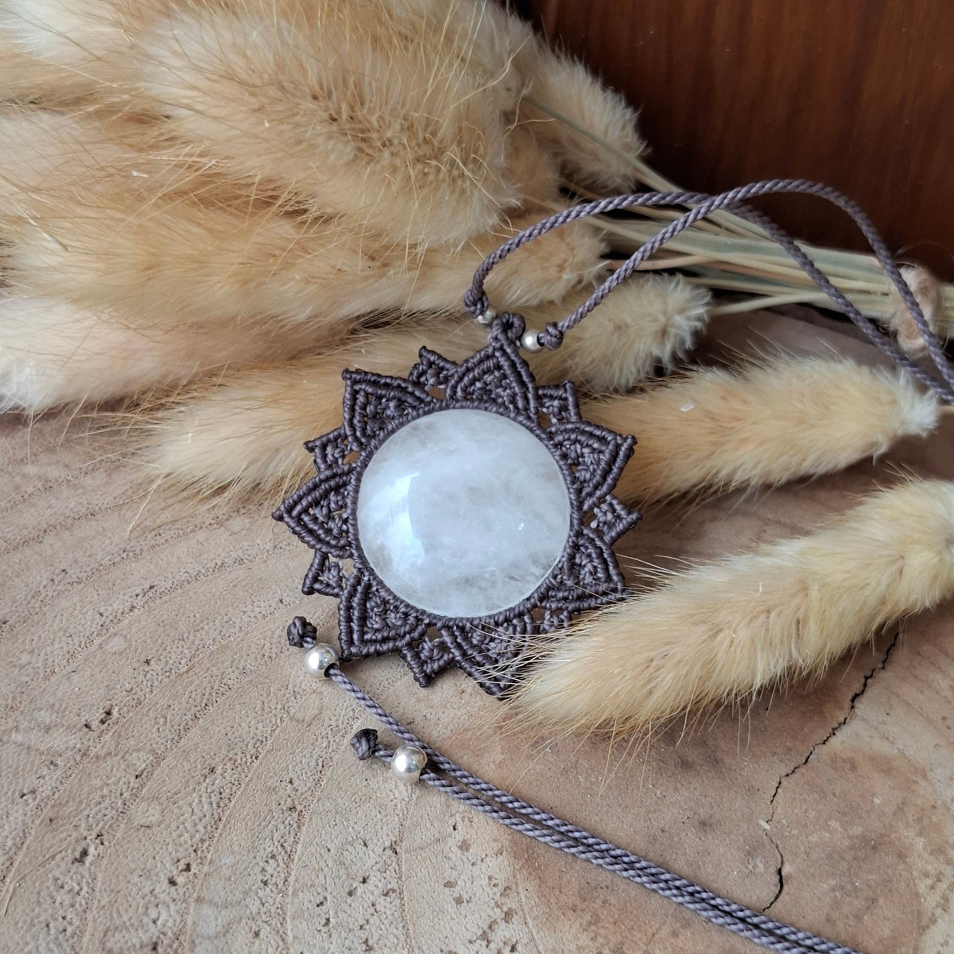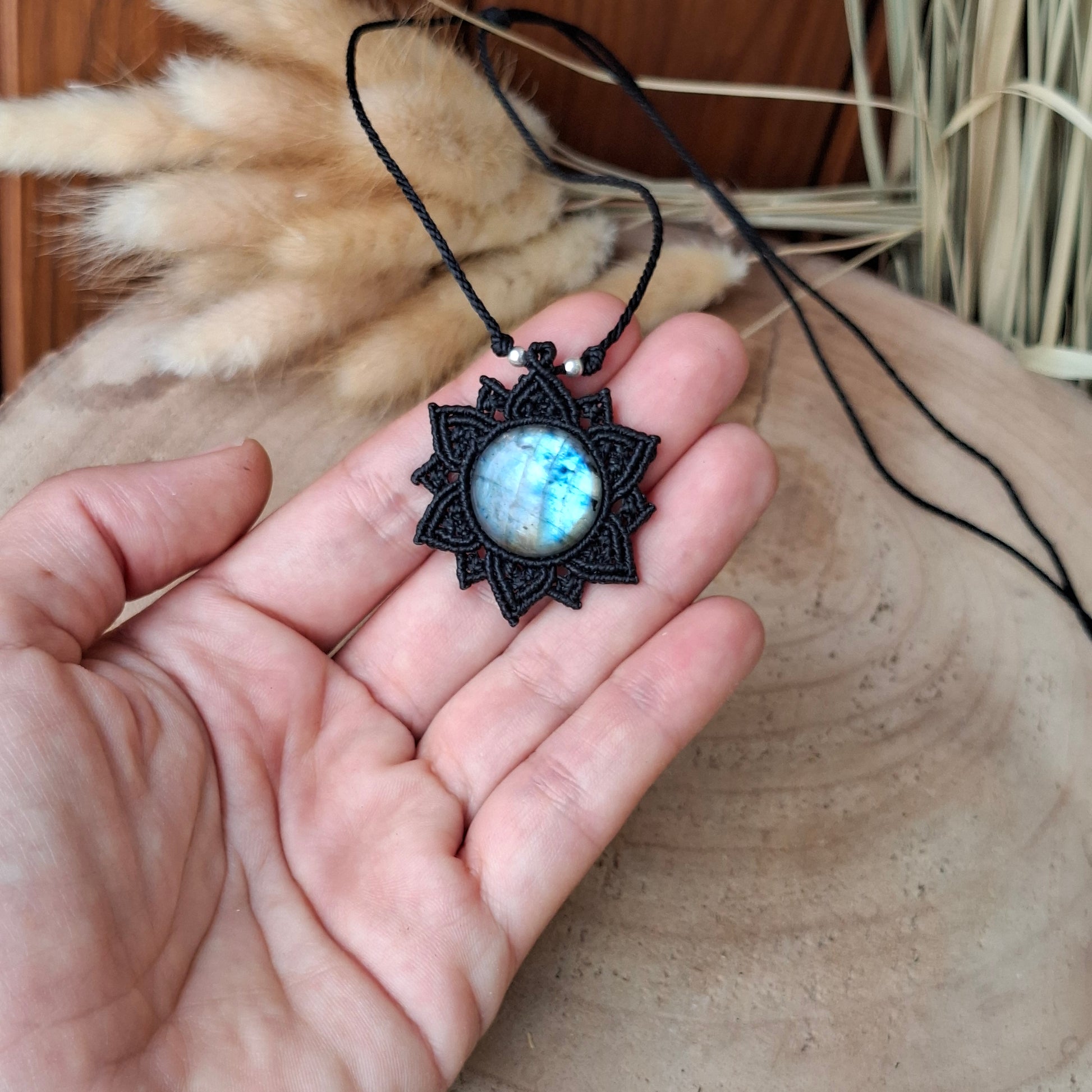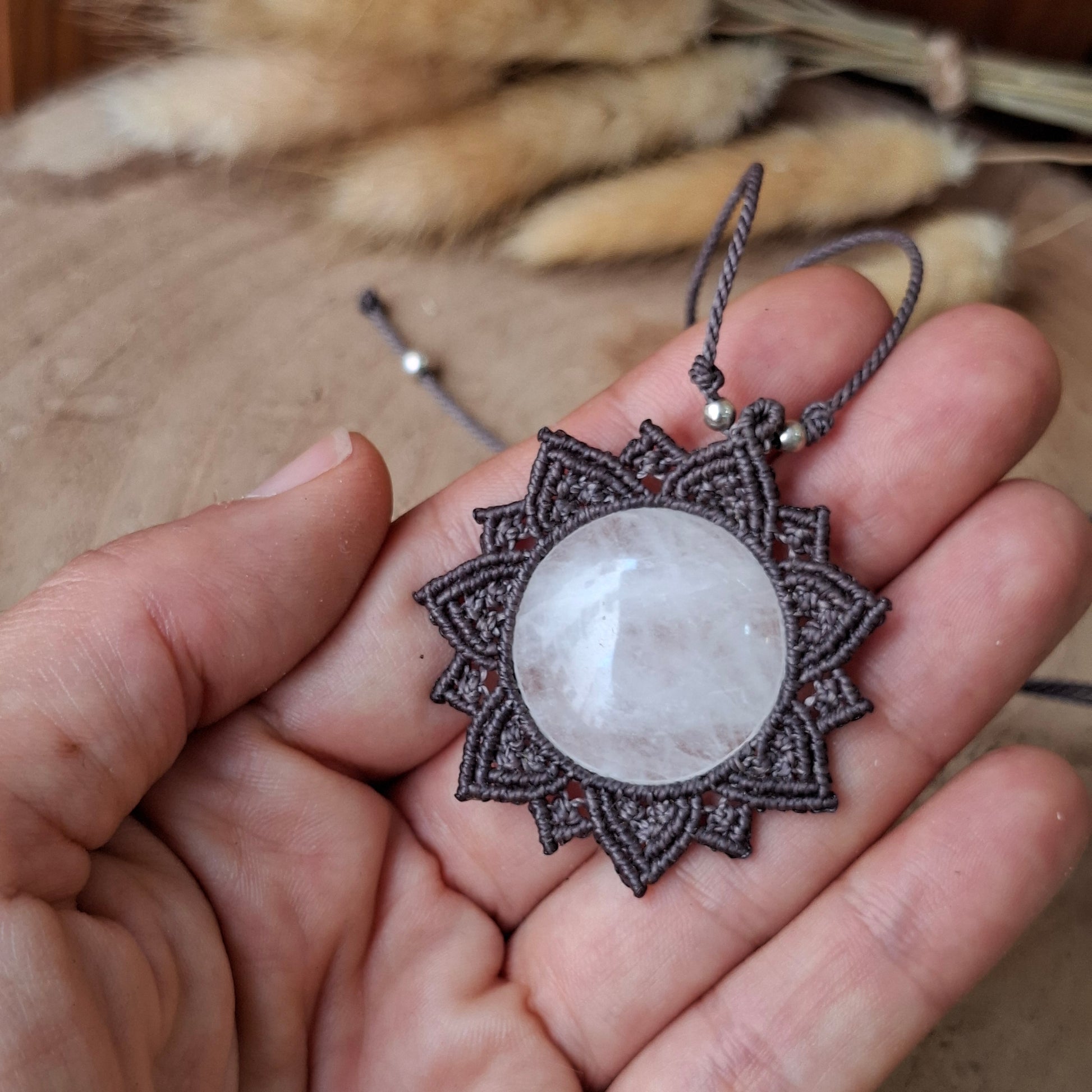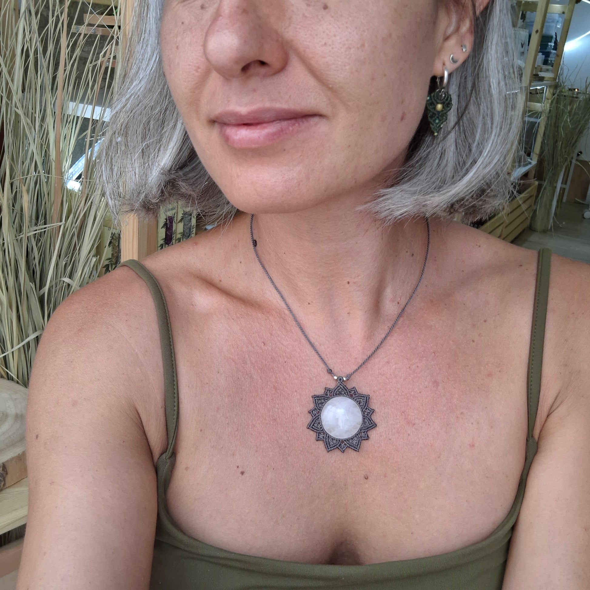 Las joyas hechas en macramé están elaboradas de hilo encerado de poliéster de alta calidad. Aunque el hilo es resistente al agua, recomiendo retirarse la joya para ducharse o para bañarse en la playa o en la piscina. El agua de la piscina contiene cloro y otros elementos químicos que podrían dañar el hilo, los elementos que decoran la pieza y el mineral en sí. Mientras no se use la joya, guarda tu joya en la bolsa de algodón que la contiene y en un lugar donde la temperatura ni la luz directa le pueda afectar de forma continua. Las joyas que pueden tener pequeños elementos decorativos como cuentas de latón y plata, puedes recuperar su brillo fácilmente frotando suavemente con una gamuza limpia metales.