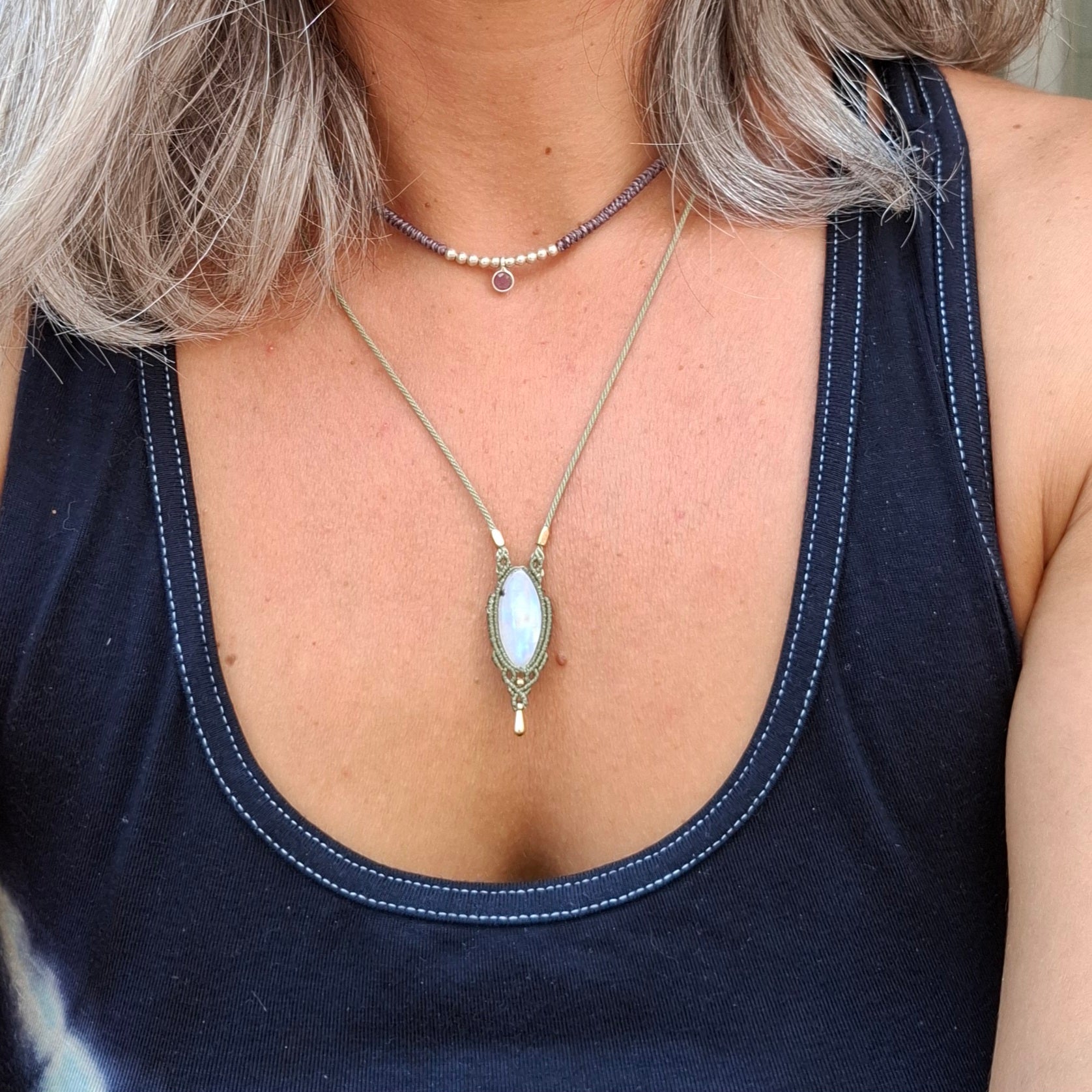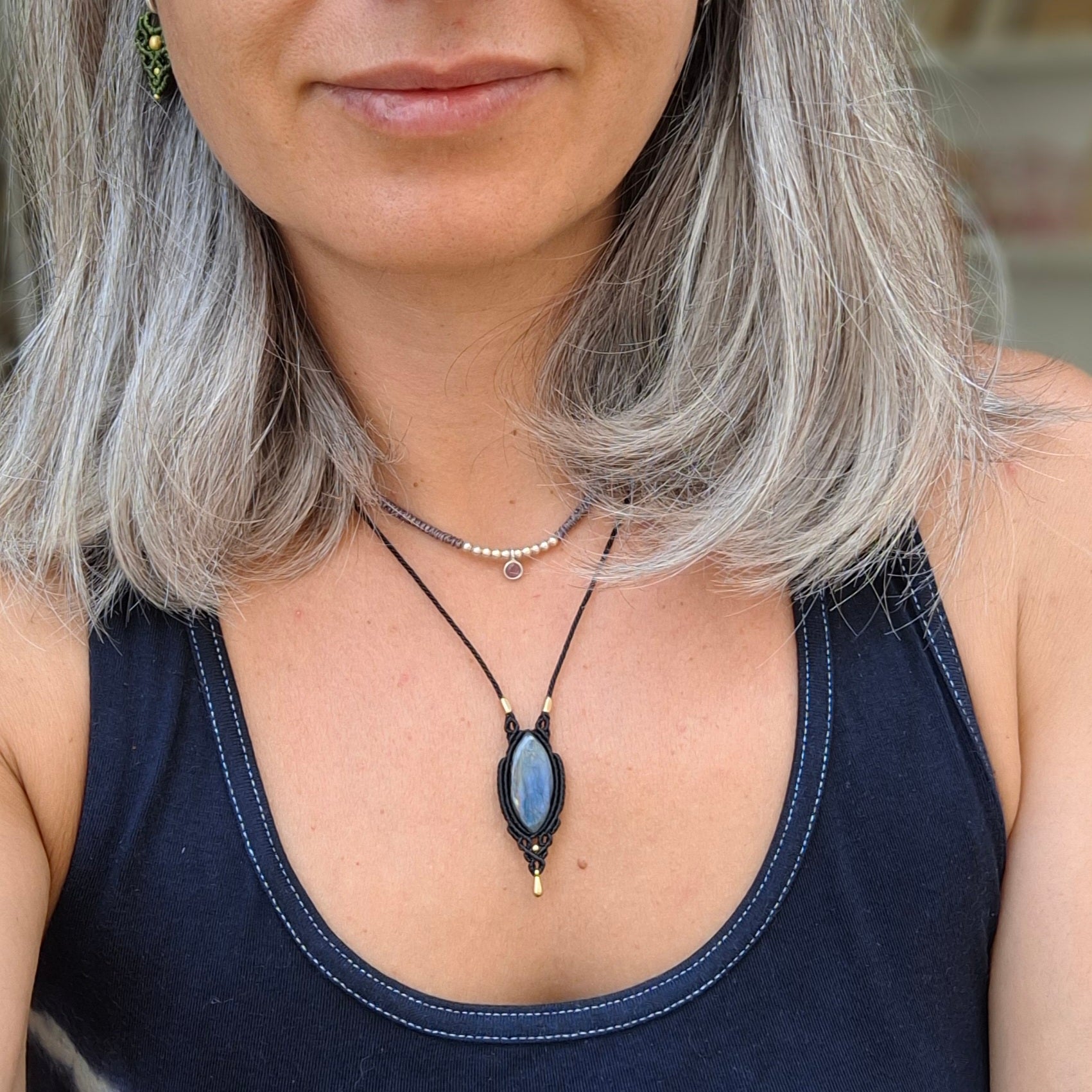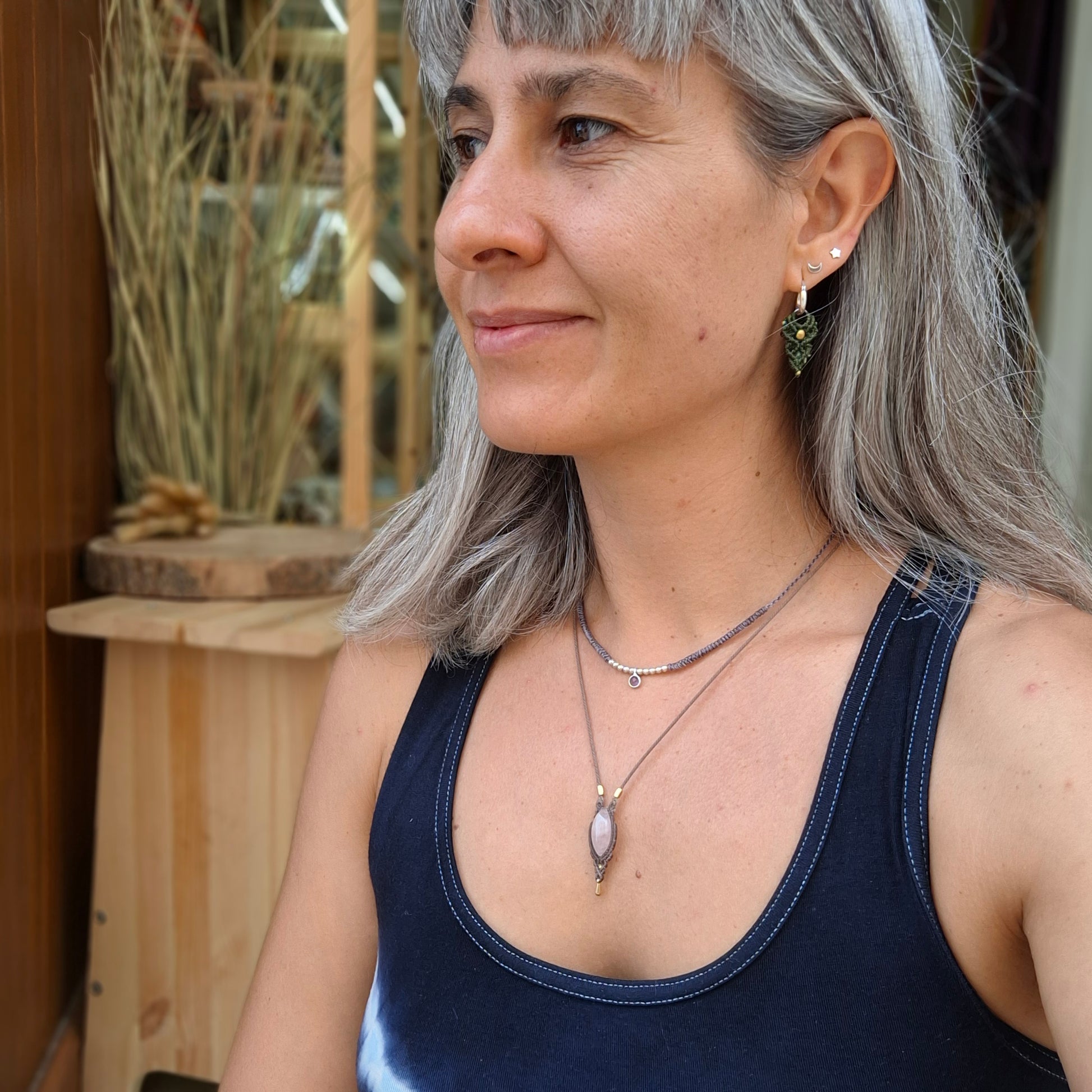 Las joyas hechas en macramé están elaboradas de hilo encerado de poliéster de alta calidad. Aunque el hilo es resistente al agua, recomiendo retirarse la joya para ducharse o para bañarse en la playa o en la piscina. El agua de la piscina contiene cloro y otros elementos químicos que podrían dañar el hilo, los elementos que decoran la pieza y el mineral en sí. Mientras no se use la joya, guarda tu joya en la bolsa de algodón que la contiene y en un lugar donde la temperatura ni la luz directa le pueda afectar de forma continua. Las joyas que pueden tener pequeños elementos decorativos como cuentas de latón y plata, puedes recuperar su brillo fácilmente frotando suavemente con una gamuza limpia metales.