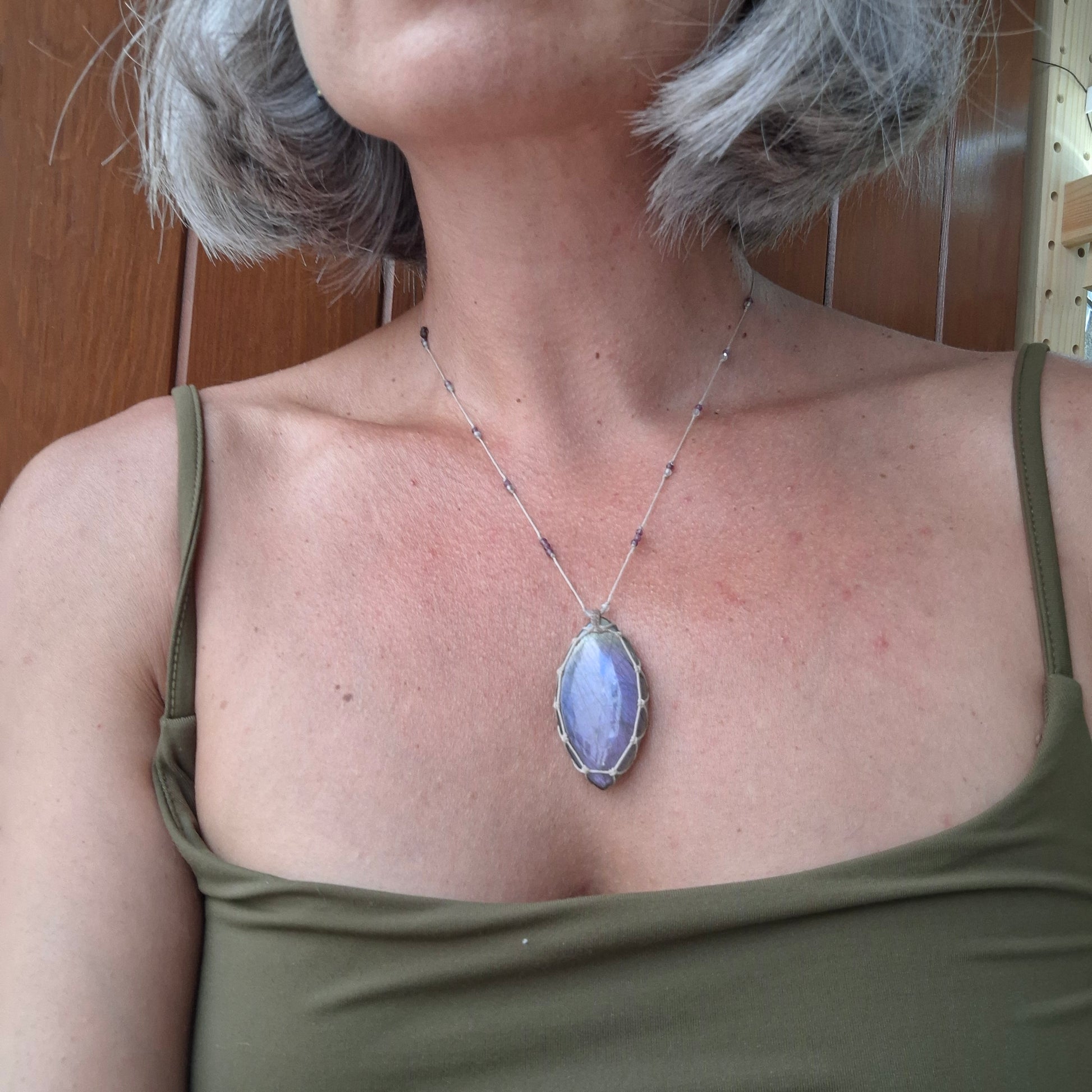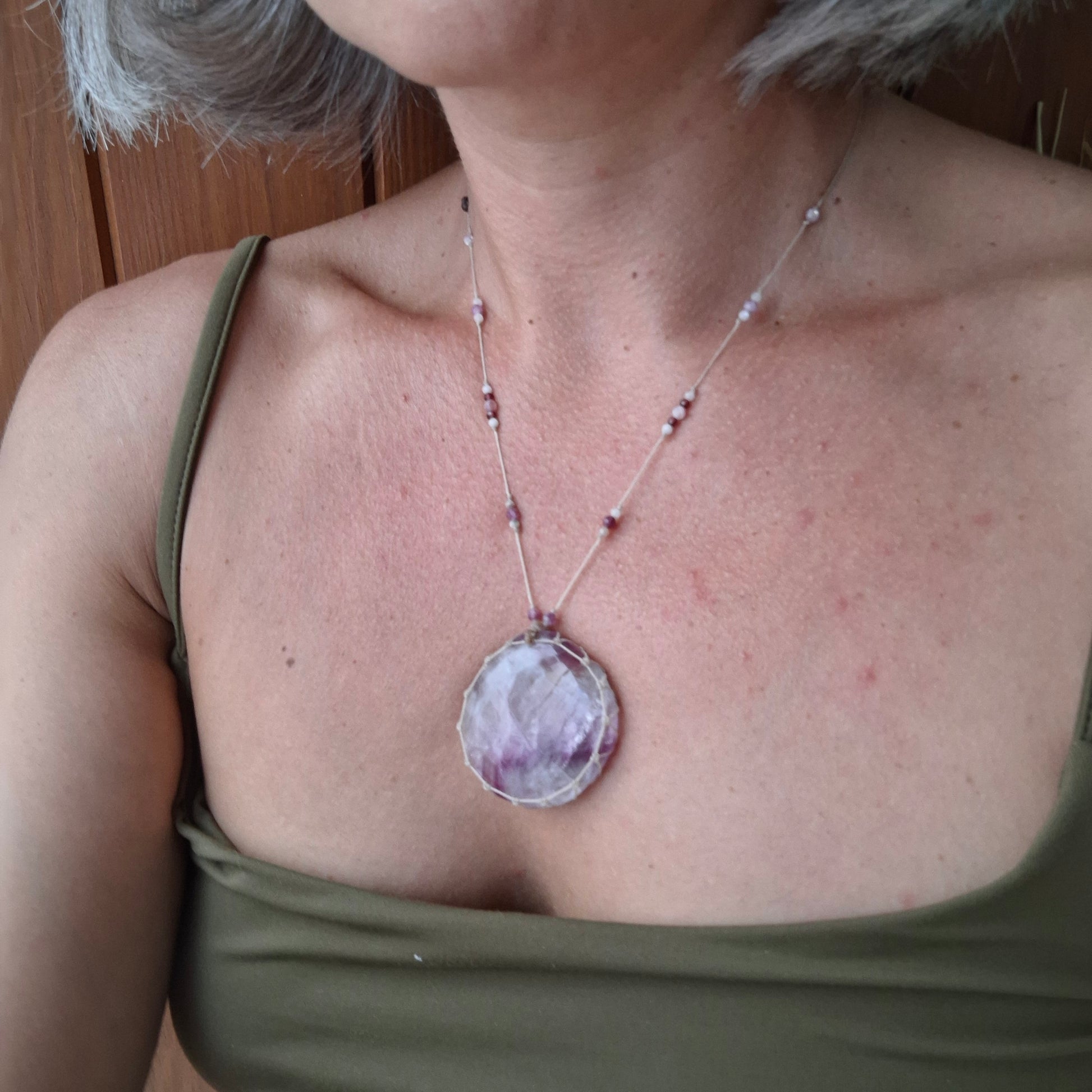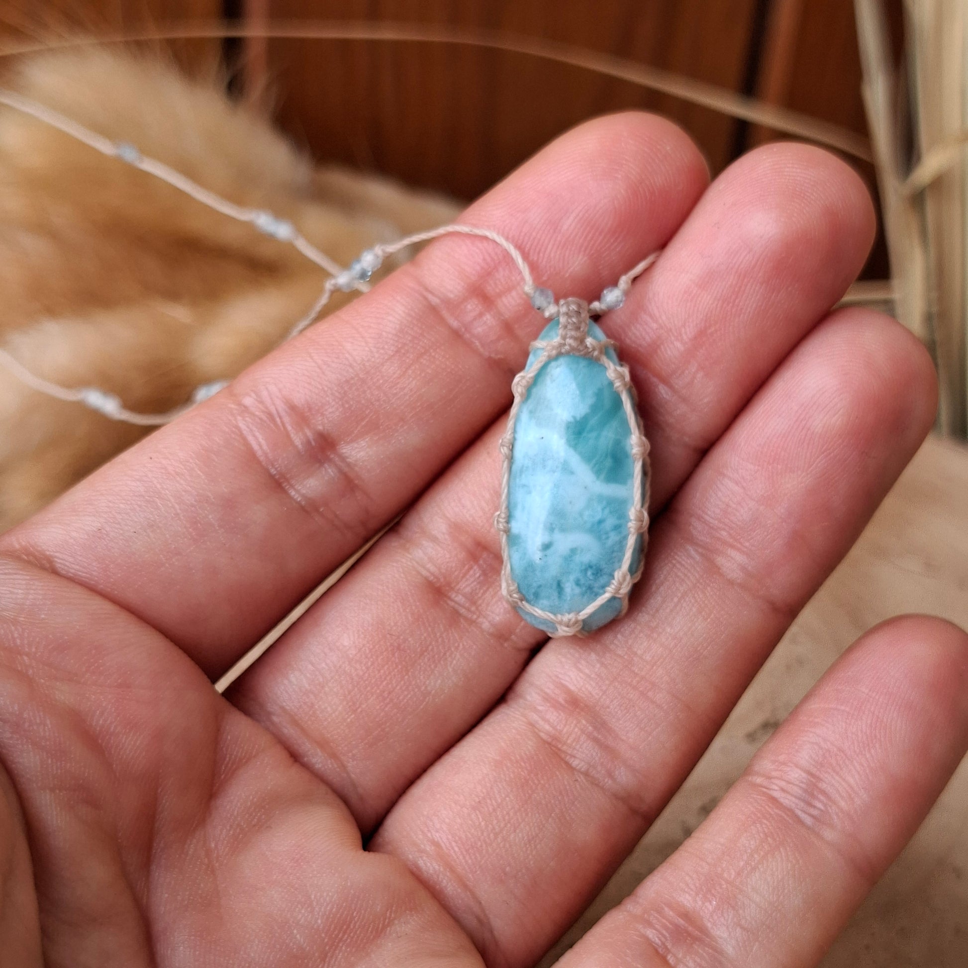 Las joyas hechas en macramé están elaboradas de hilo encerado de poliéster de alta calidad. Aunque el hilo es resistente al agua, recomiendo retirarse la joya para ducharse o para bañarse en la playa o en la piscina. El agua de la piscina contiene cloro y otros elementos químicos que podrían dañar el hilo, los elementos que decoran la pieza y el mineral en sí. Mientras no se use la joya, guarda tu joya en la bolsa de algodón que la contiene y en un lugar donde la temperatura ni la luz directa le pueda afectar de forma continua. Las joyas que pueden tener pequeños elementos decorativos como cuentas de latón y plata, puedes recuperar su brillo fácilmente frotando suavemente con una gamuza limpia metales.