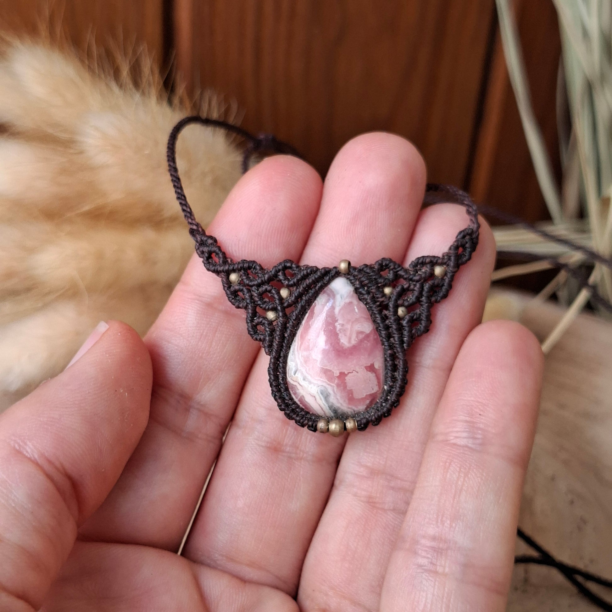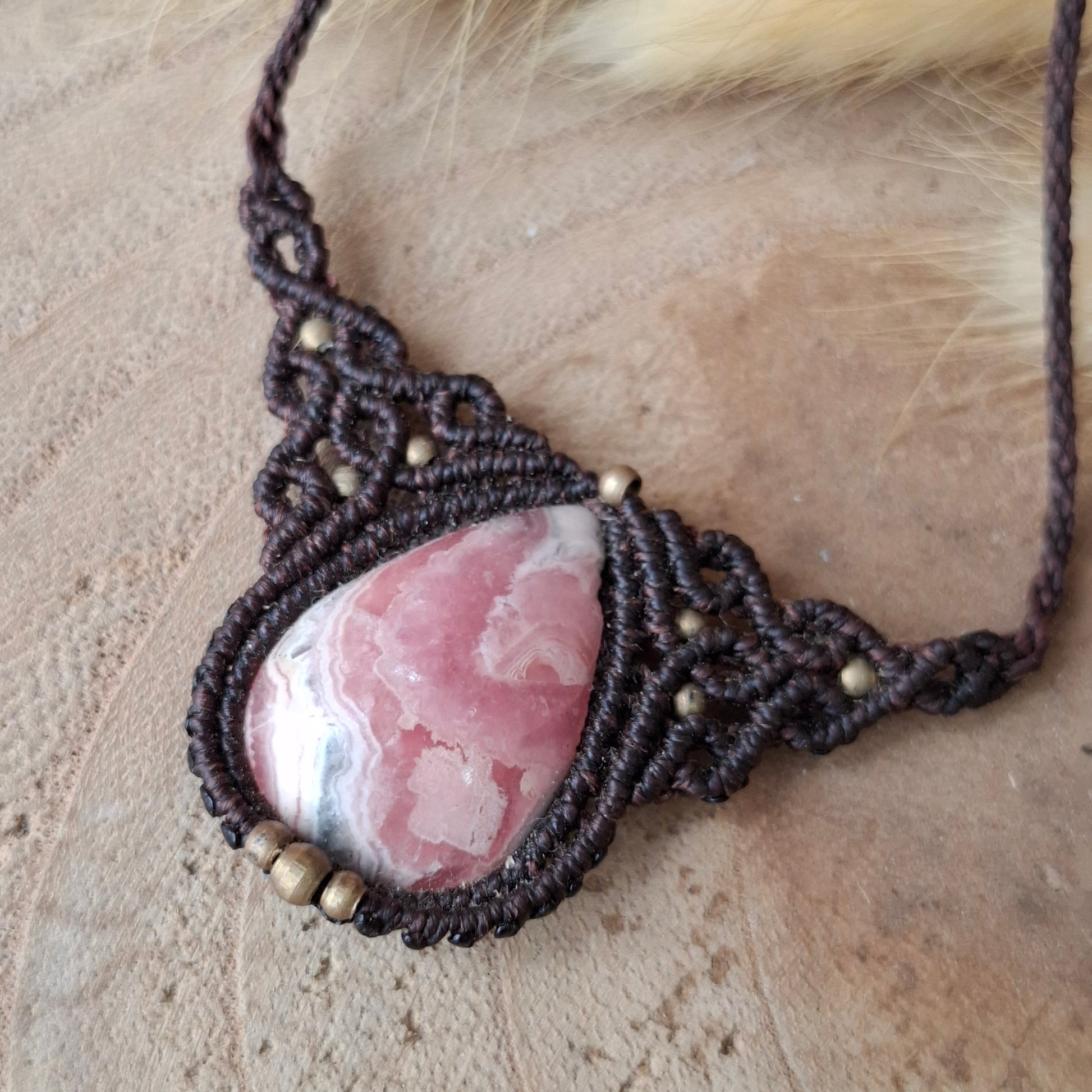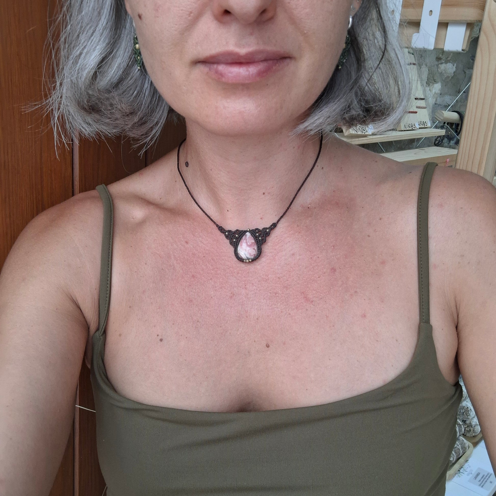 Collar de macramé con Rodocrosita