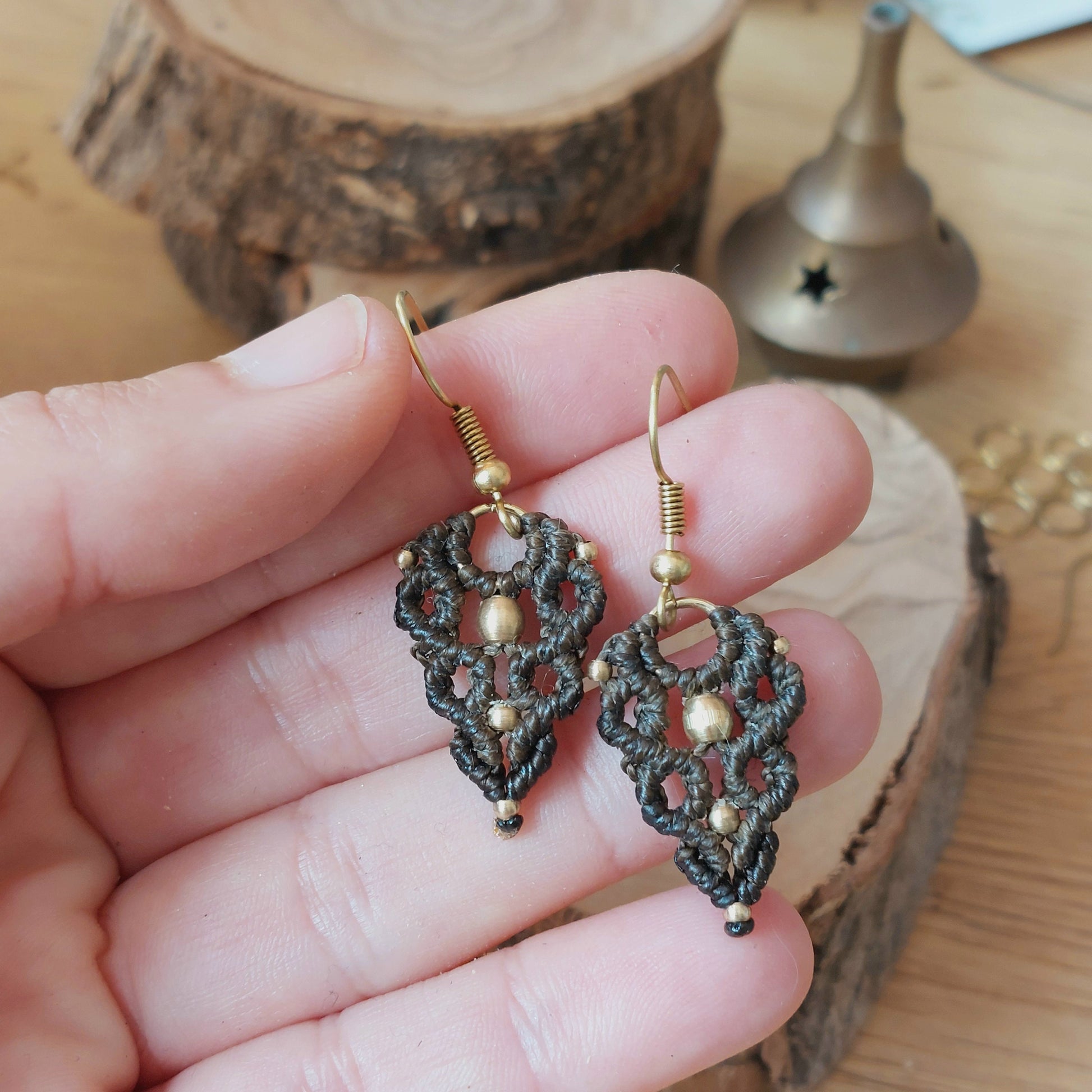 Pendientes de macramé y latón.