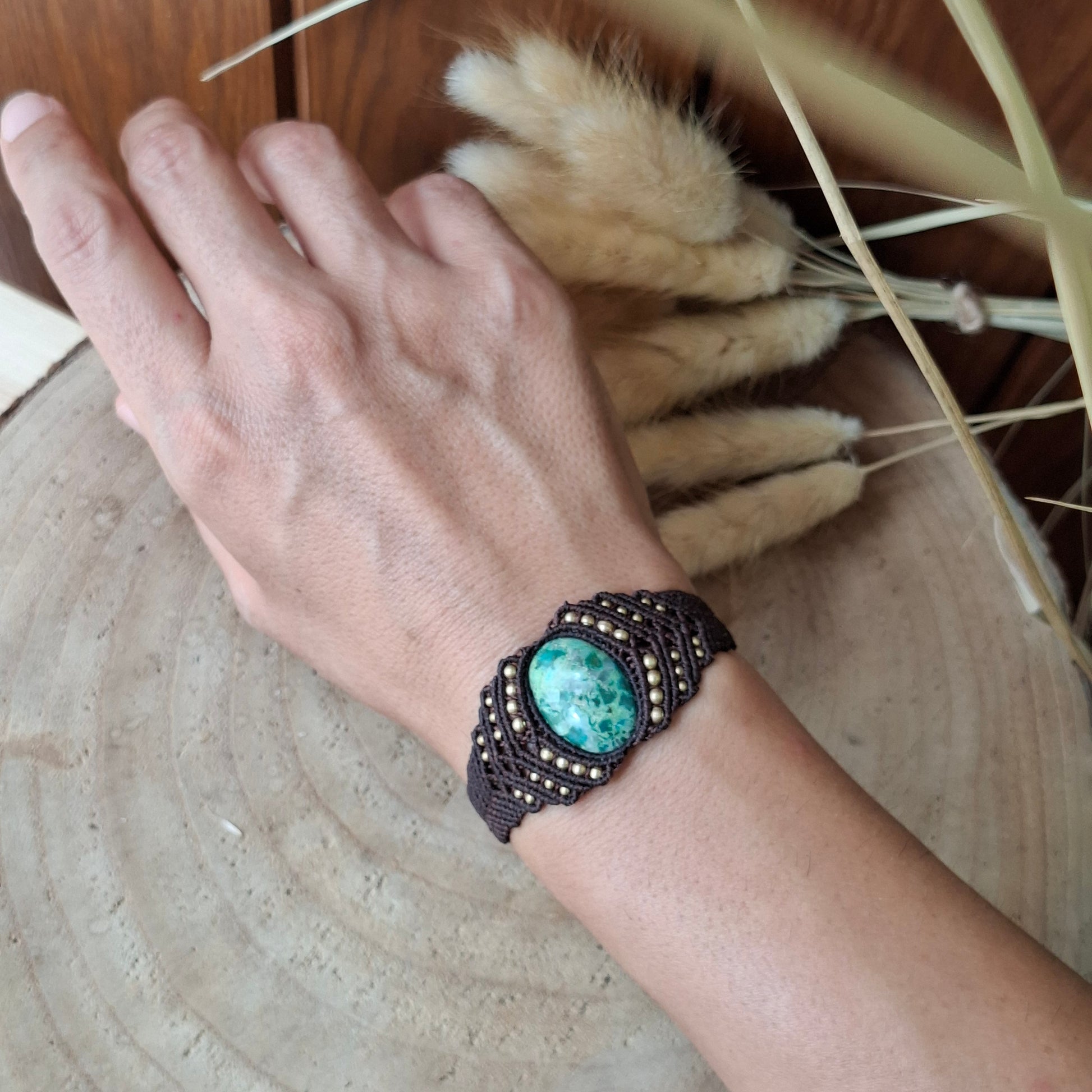 - Trenzada a mano con hilo encerado de primera calidad, grosor 0,5mm, color marrón chocolate