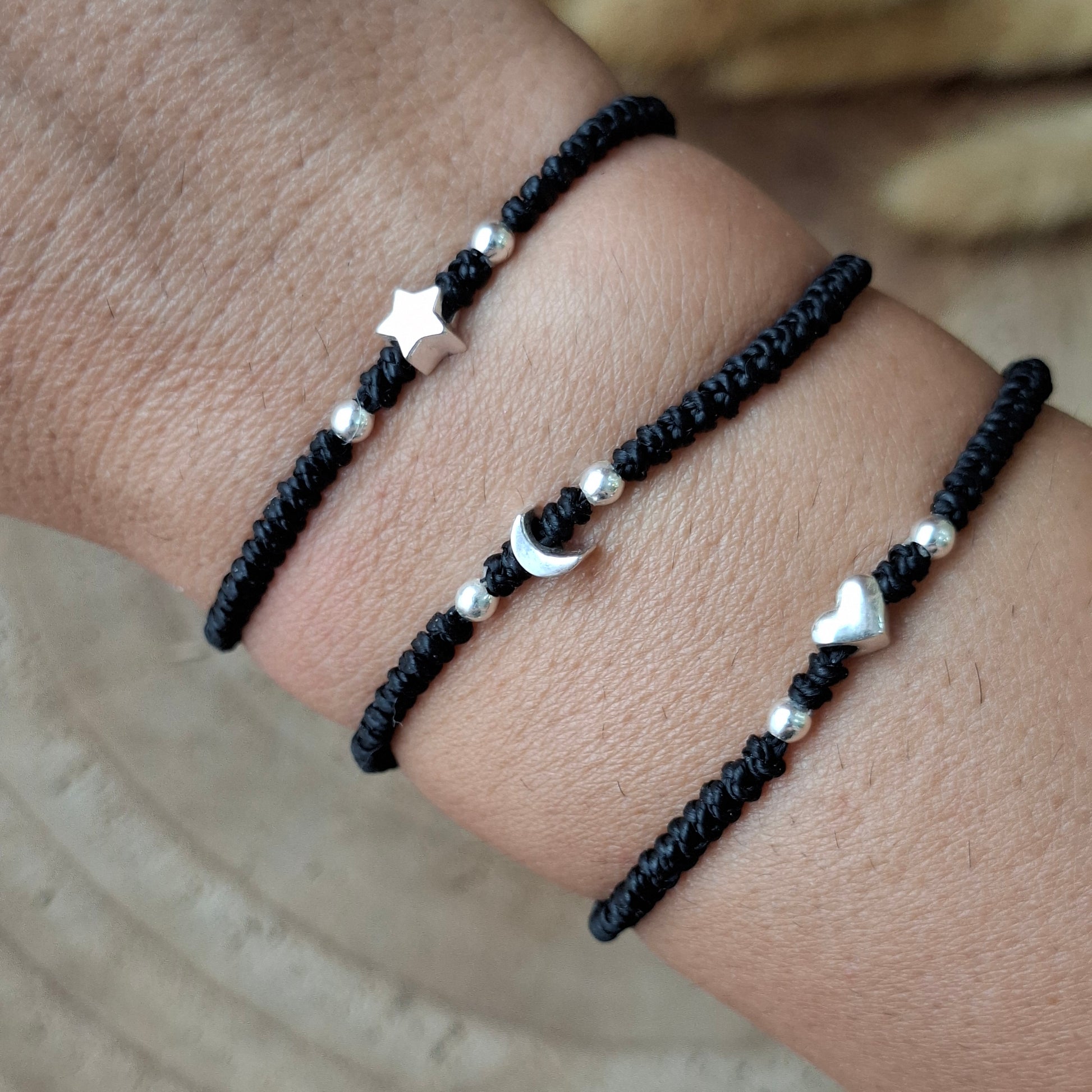 Pulseras CORAZÓN, ESTRELLA y LUNA plata