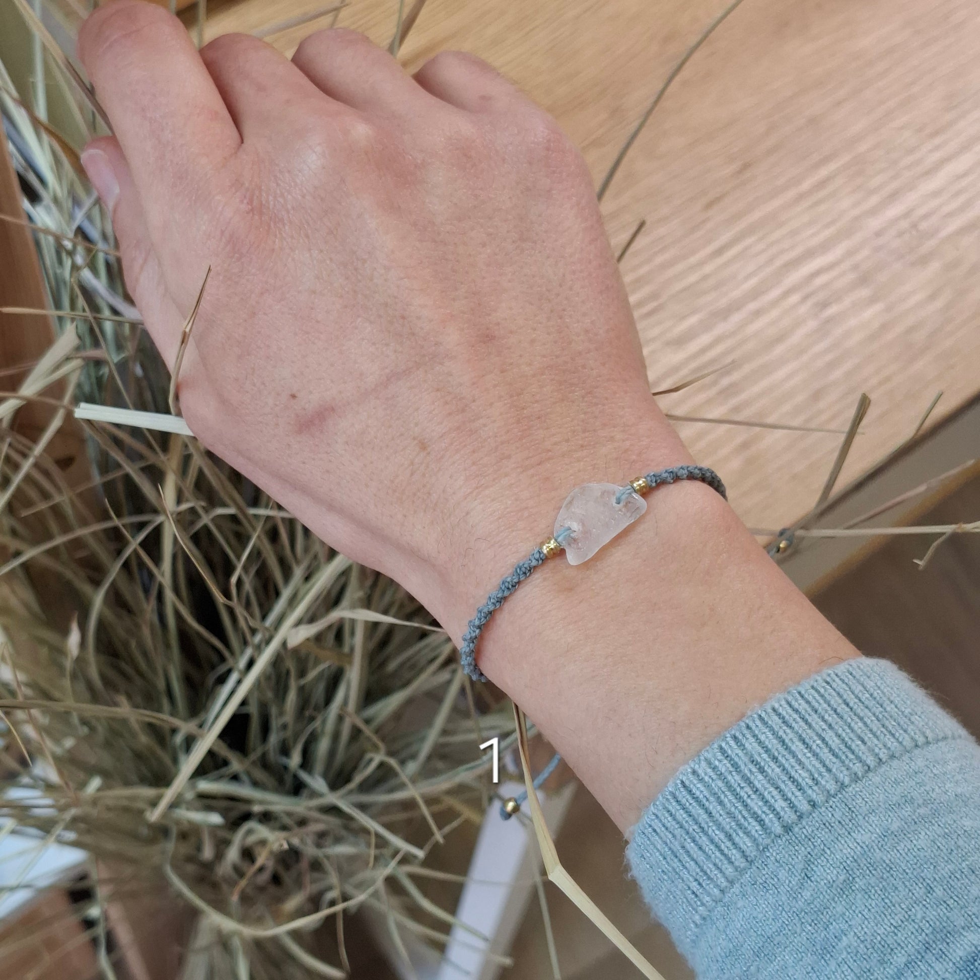 Las joyas hechas en macramé están elaboradas de hilo encerado de poliéster de alta calidad. Aunque el hilo es resistente al agua, recomiendo retirarse la joya para ducharse o para bañarse en la playa o en la piscina. El agua de la piscina contiene cloro y otros elementos químicos que podrían dañar el hilo, los elementos que decoran la pieza y el mineral en sí. Mientras no se use la joya, guarda tu joya en la bolsa de algodón que la contiene y en un lugar donde la temperatura ni la luz directa le pueda afectar de forma continua. Las joyas que pueden tener pequeños elementos decorativos como cuentas de latón y plata, puedes recuperar su brillo fácilmente frotando suavemente con una gamuza limpia metales.