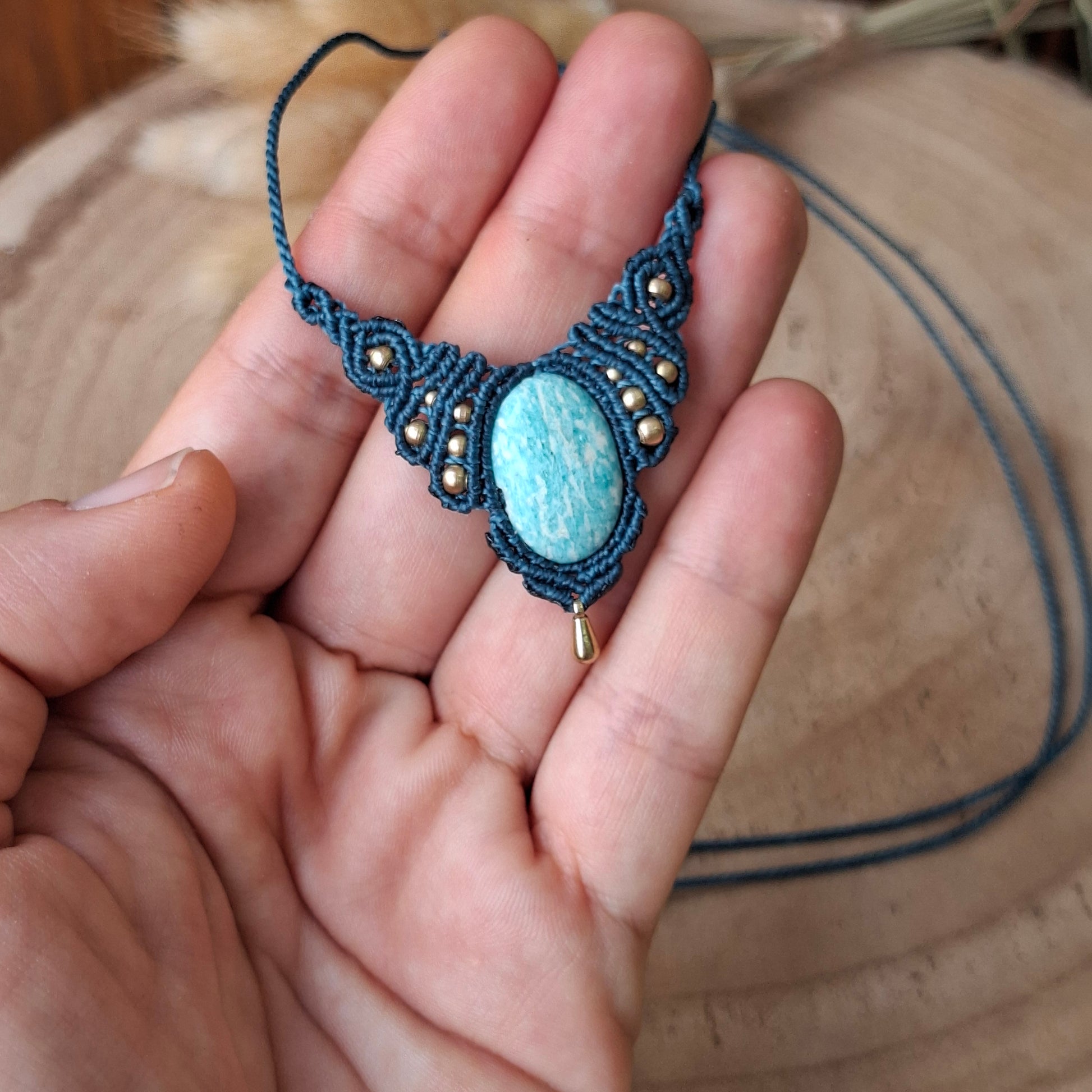 Las joyas hechas en macramé están elaboradas de hilo encerado de poliéster de alta calidad. Aunque el hilo es resistente al agua, recomiendo retirarse la joya para ducharse o para bañarse en la playa o en la piscina. El agua de la piscina contiene cloro y otros elementos químicos que podrían dañar el hilo, los elementos que decoran la pieza y el mineral en sí. Mientras no se use la joya, guarda tu joya en la bolsa de algodón que la contiene y en un lugar donde la temperatura ni la luz directa le pueda afectar de forma continua. Las joyas que pueden tener pequeños elementos decorativos como cuentas de latón y plata, puedes recuperar su brillo fácilmente frotando suavemente con una gamuza limpia metales.