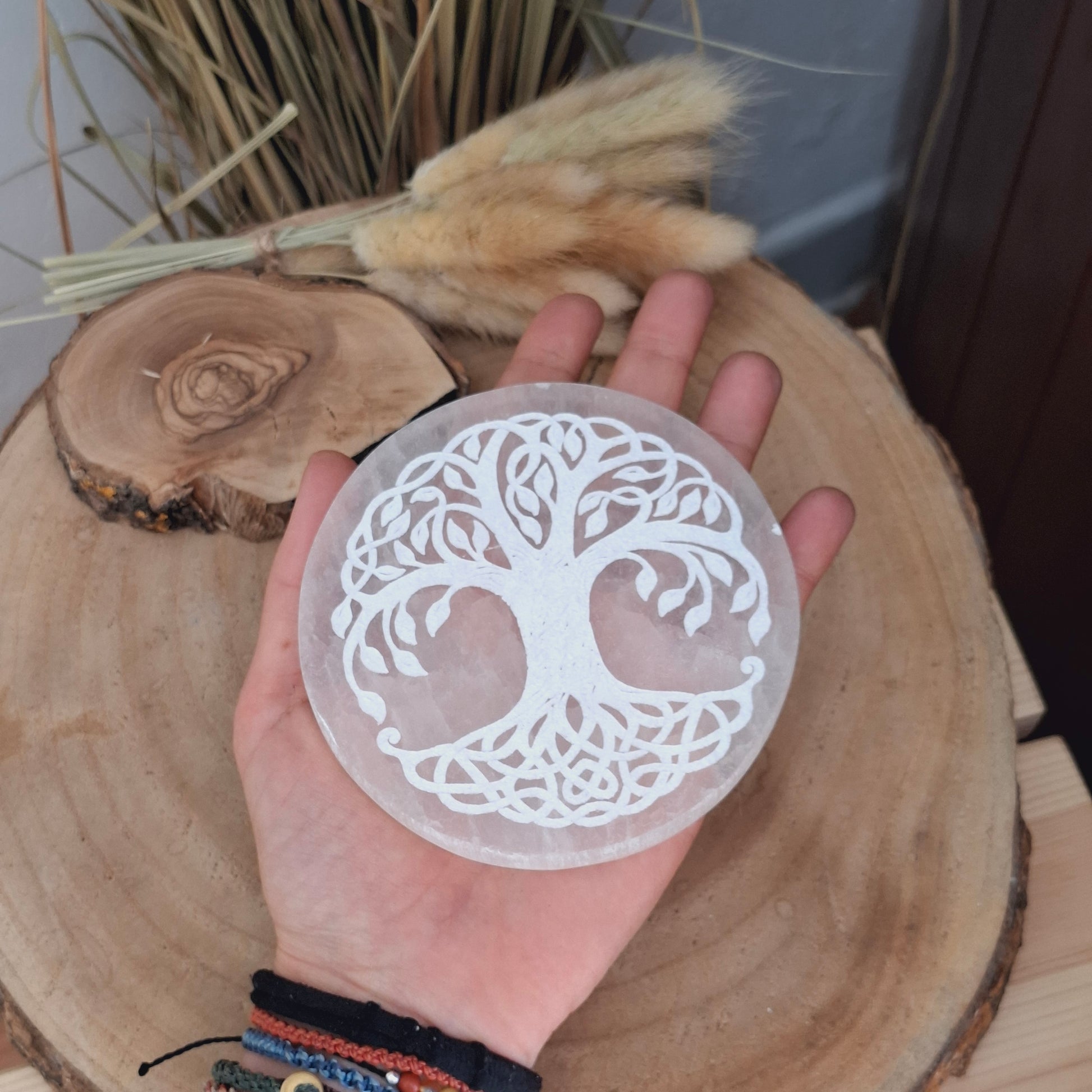 Esta placa de Selenita, te ayudará a limpiar tanto tus cristales como tus joyas, todas aquellas que tengan minerales. Ella eliminará y limpiará de energías acumuladas en tus anillos, colgantes, pendientes… Sólo tienes que dejarlas por las noches encima de esta placa y ella hará el resto.